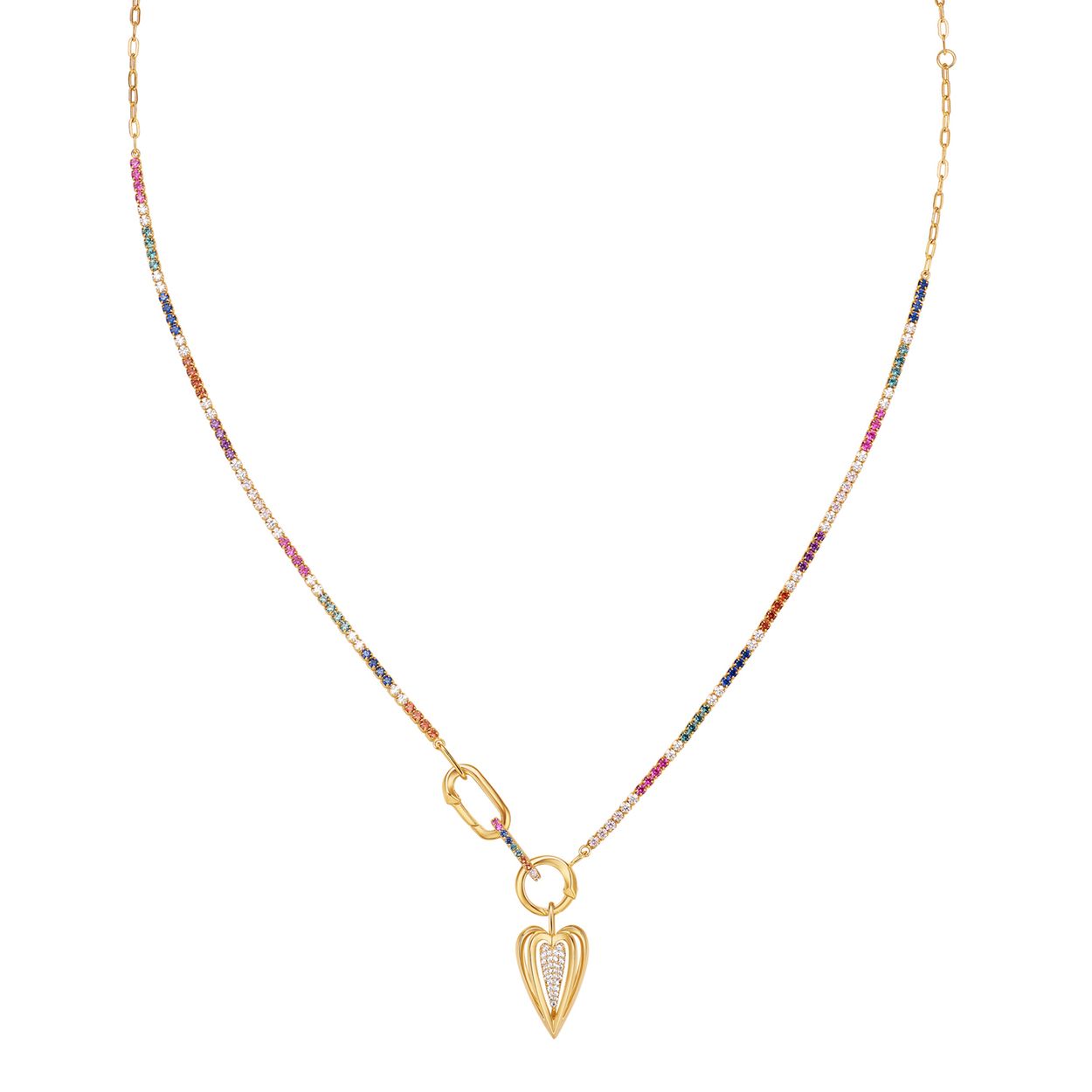 Geef je ketting een upgrade met deze multidemensionale hartvormige bedel. De bedel bevat sprankelende zirkonia stenen en is gemaakt van 925 sterling zilver met 14 karaat gouden plating. Bevestig je bedel eenvoudig aan een kettng, armband of connector.
