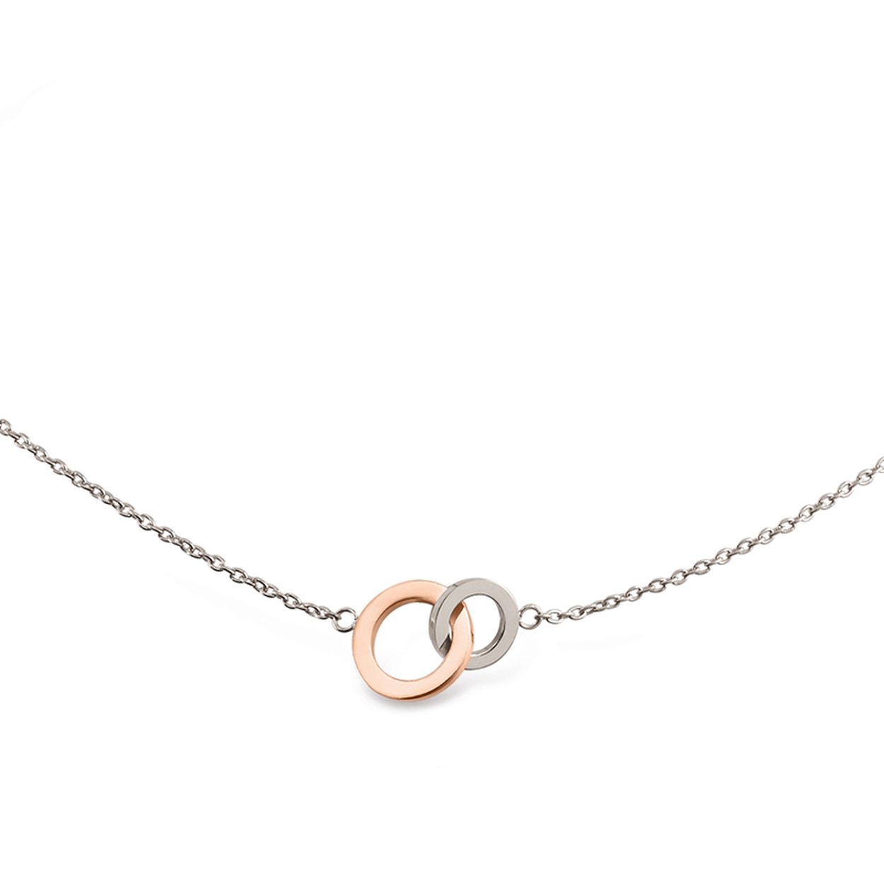 Dit zilverkleurige damescollier van Boccia Titanium heeft in het midden een hanger in de vorm van twee cirkels, gematteerd en glanzend. Het collier is 45 cm lang en heeft een verlengstuk van 5 cm en heeft ros�kleurige accenten.