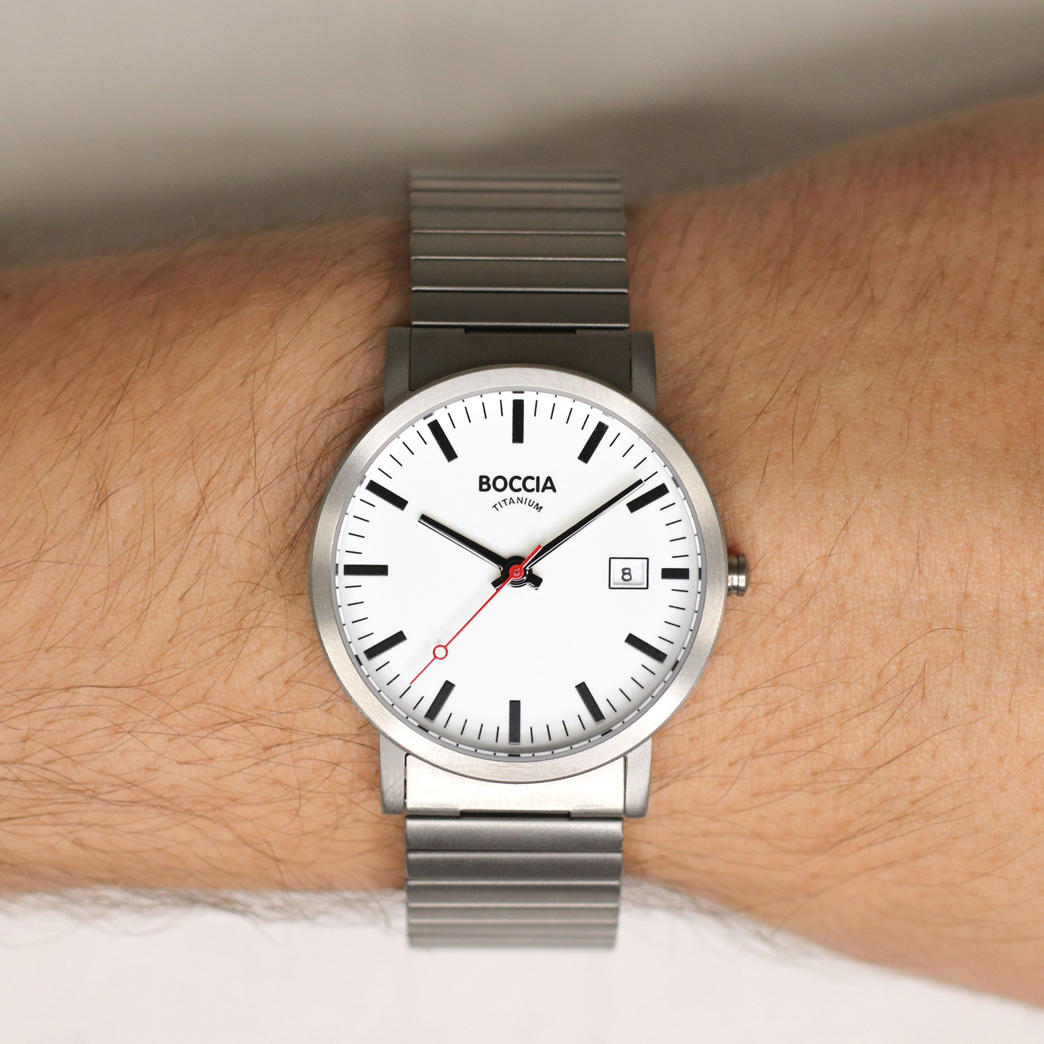 Dit herenhorloge van Boccia heeft een unieke uitstraling en een chique uiterlijk. De 3622-04 heeft een ronde titanium horlogekast met een diameter van 38mm en een witte wijzerplaat met een datum en zwarte uursaanduiding en een rode secondewijzer. Aan de titanium kast zit een zilverkleurige rekband. Het horloge heeft een mineraalglas en is 5ATM. Of je nu sportief of chique gekleed gaat, dit horloge past bij elke outfit en iedere gelegenheid!