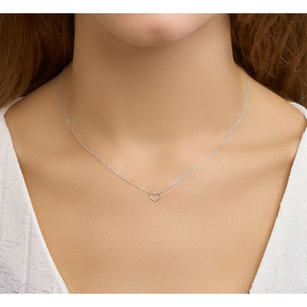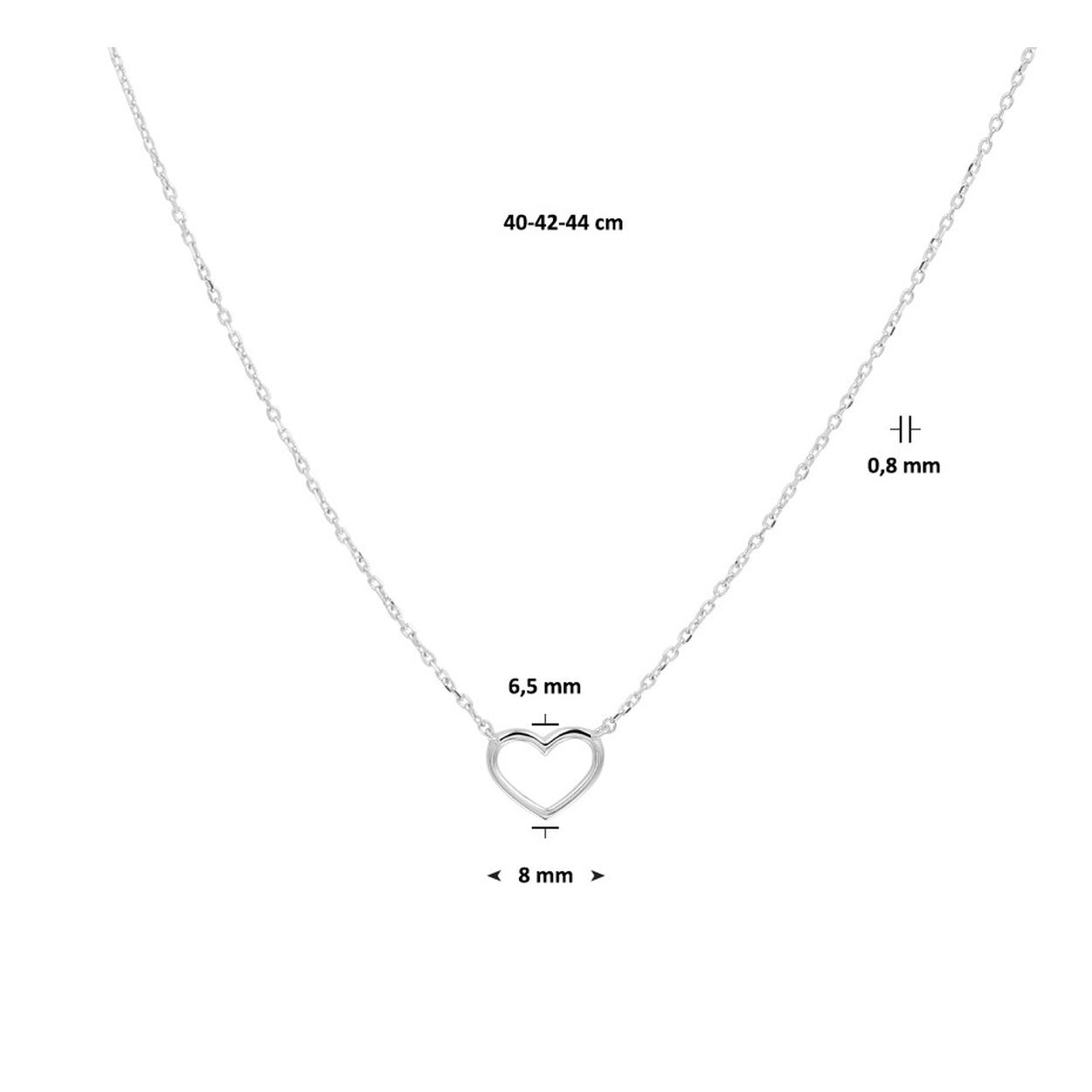 Dit fijne 14k witgouden collier met een open hartje geeft je outfit een vriendelijke touch. Het collier heeft draaglengtes van 40, 42 en 44cm. Tip: Combineer dit collier met bijpassende hartjes sieraden uit onze collectie voor een romantische uitstraling!