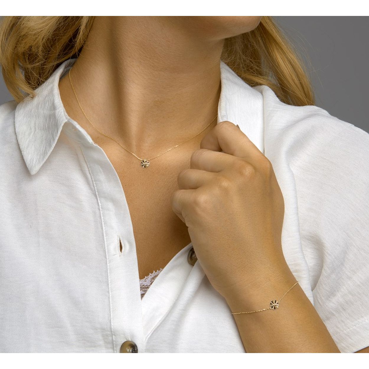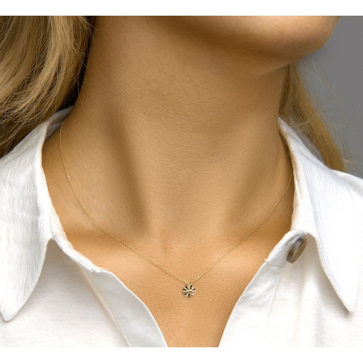 14k Geelgouden collier uitgevoerd met een gediamanteerd afgewerkt rondje. Het collier heeft draaglengtes van 40, 42 en 44cm. Het rondje heeft een diameter van 7mm.