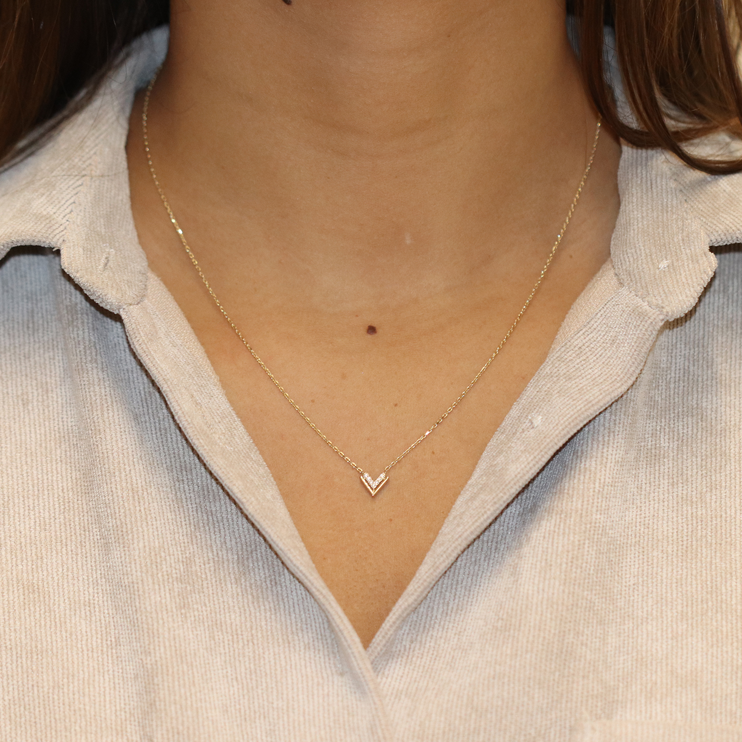 Dit collier met dubbele v van Glow is een tijdloos item voor dames! Het collier is gemaakt van 14 karaat goud en heeft een totale lengte van 45cm. De achterste v is gezet met sprankelende zirkonia's. Met welke andere sieraden combineer jij dit collier?