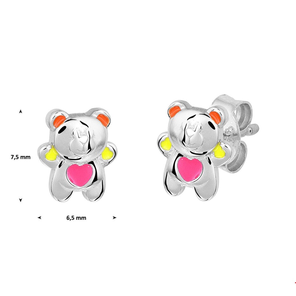 Beschrijving: Deze schattige gerhodineerd zilveren met emaille beer oorknoppen hebben een afmeting van 7.5x6.5mm. De oorknoppen zijn te combineren met bijpassende sieraden zodat er een leuke set van te maken is. Tip: Leuk om kado te geven aan kleine dametjes die willen stralen met schattige sieraden. Info: Gerhodineerd zilver is door de rhodiumlaag beter bestand tegen verkleuren en krassen.