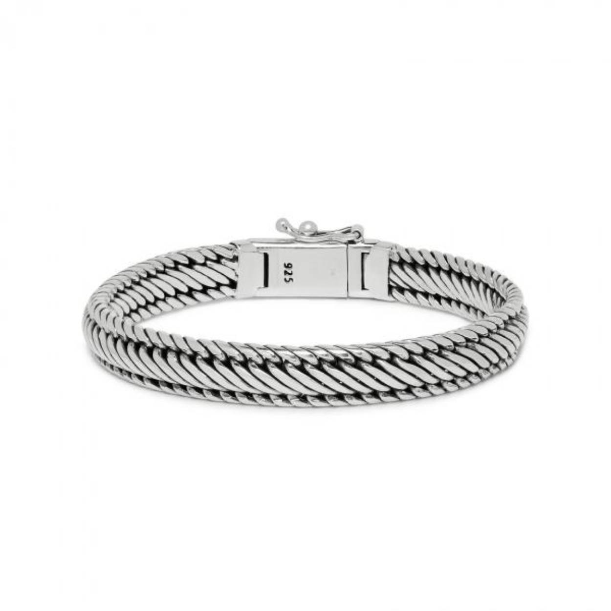 Deze handgemaakte zilveren armband heeft platte schakels waardoor de armband losjes en plat om je pols valt. De armband is afgewerkt met een strak SILK bakslot.  Deze armband is 20cm lang.