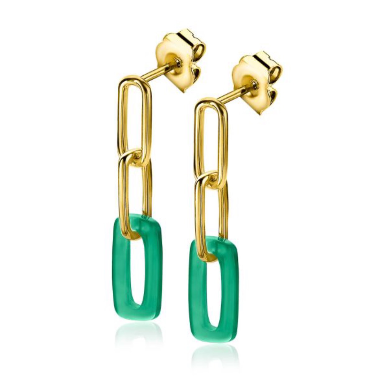 ZINZI zilveren oorhangers 14K geel verguld 34mm open ovaal groen agaat ZIO2208G